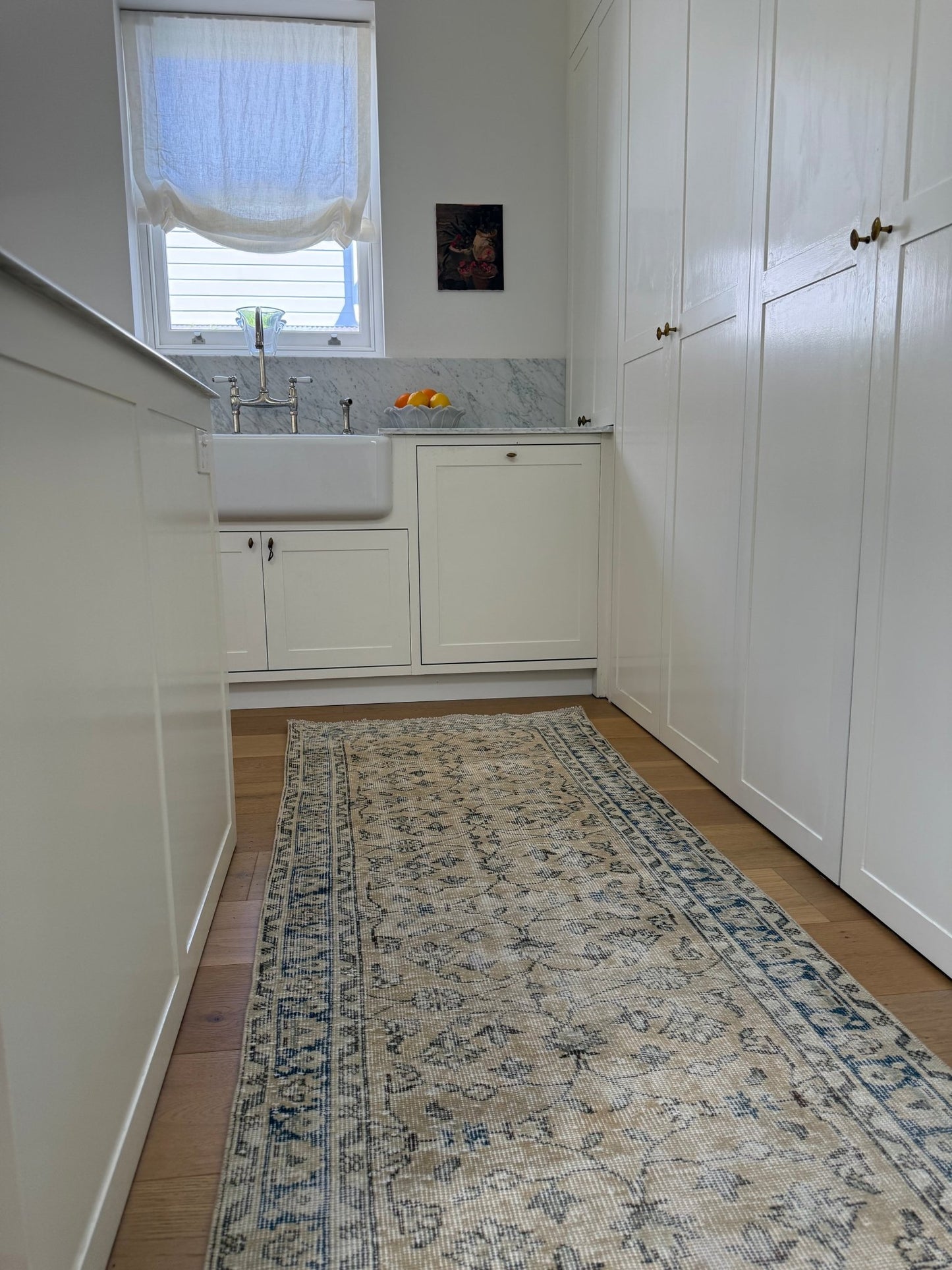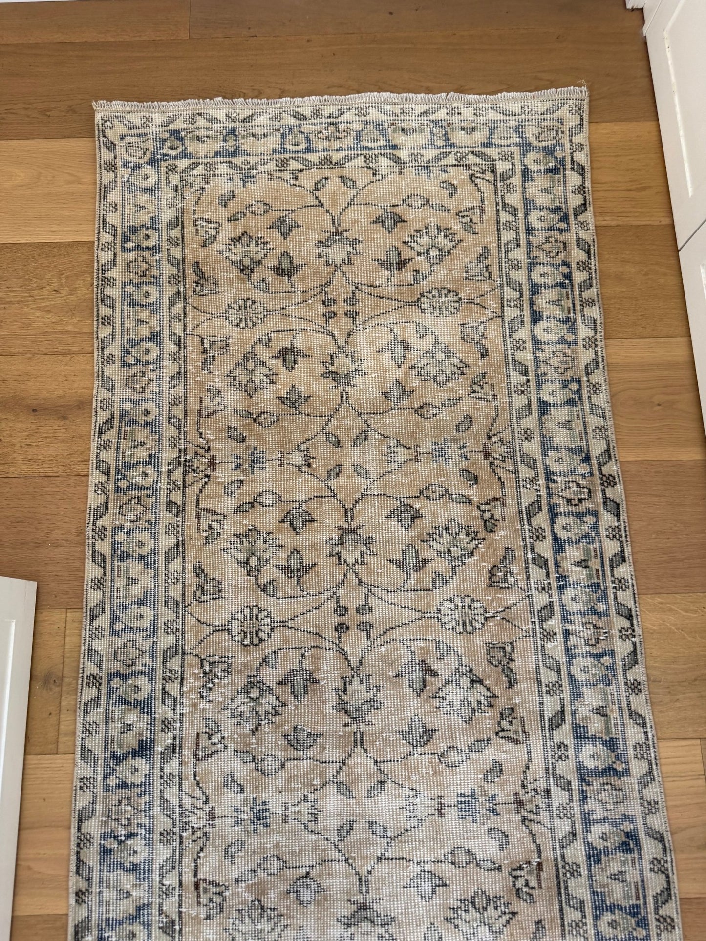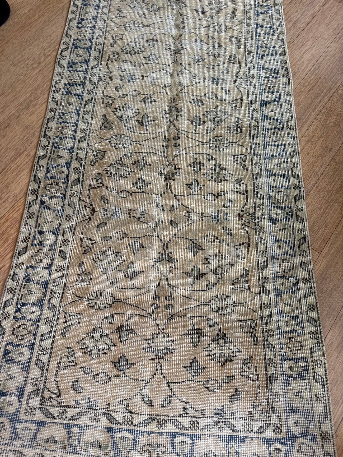 A 70 year old hand knotted Oushak Runner, hand knotted in Türkiye this runner is the type of runner we obsess over.
